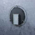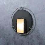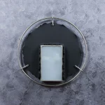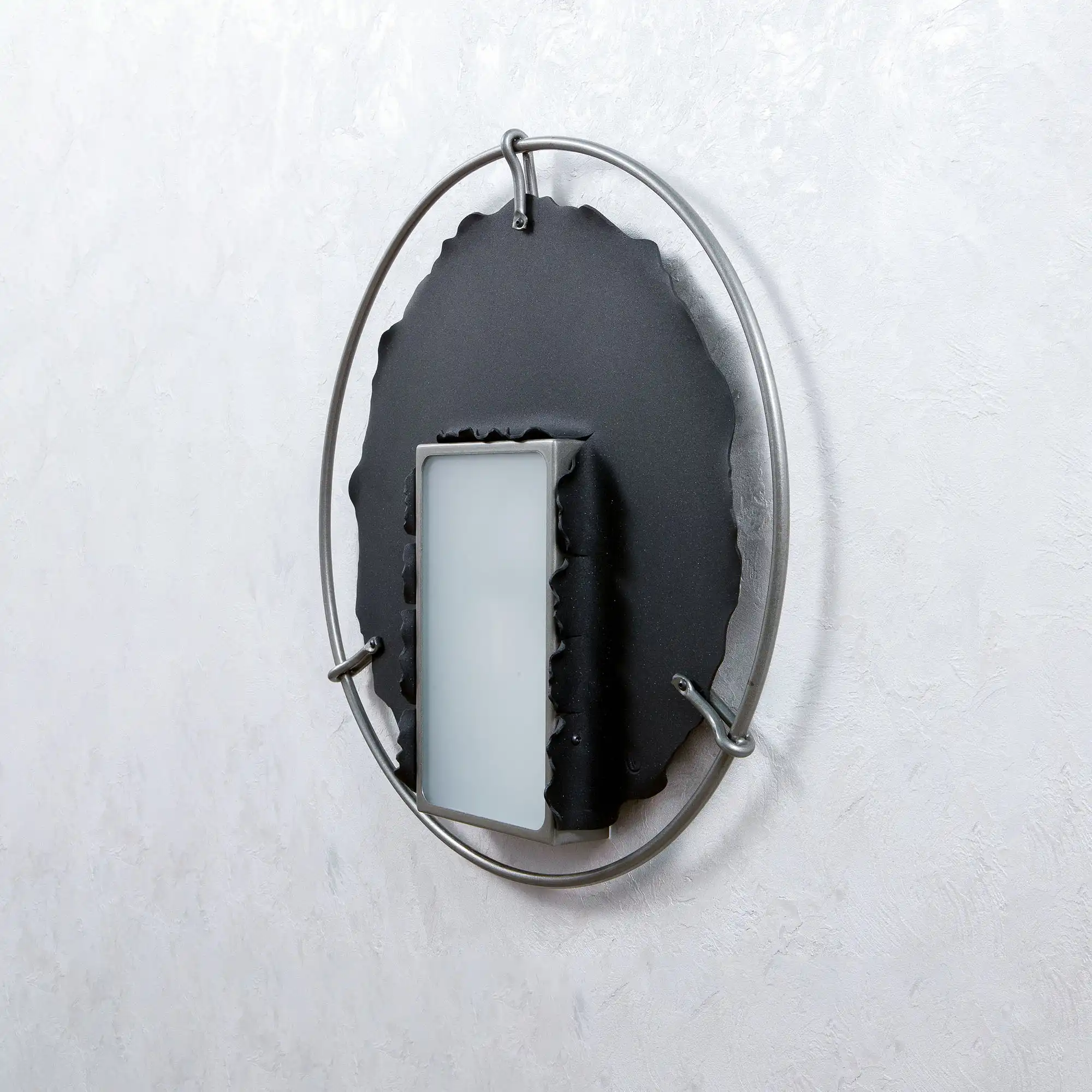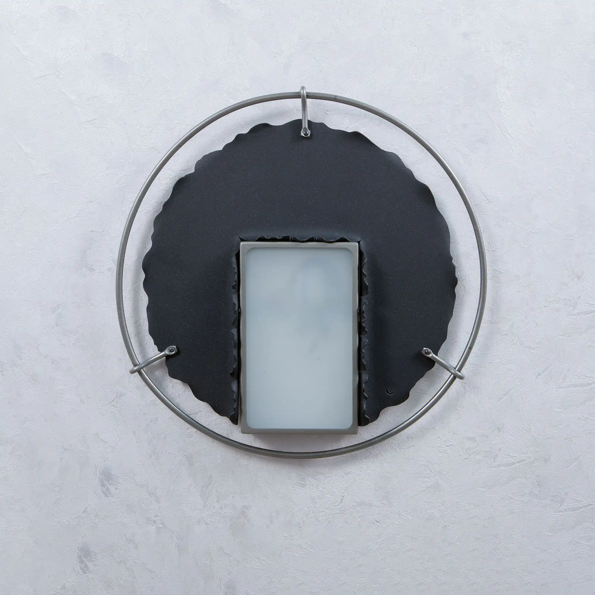 The hoop and the box, where the light source is hidden, are painted in silver, while the decorative panel is painted in silky black.