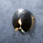 In this model, the metal seems light and malleable, unfolding like curtains and opening the way for soft, warm light. The overall convex shape of the front panel is handmade, so it shows numerous impact marks, giving the lamp an even more original look.