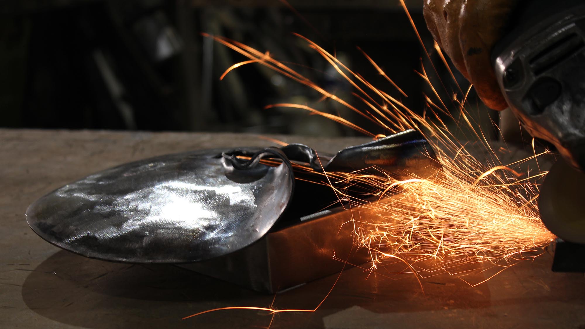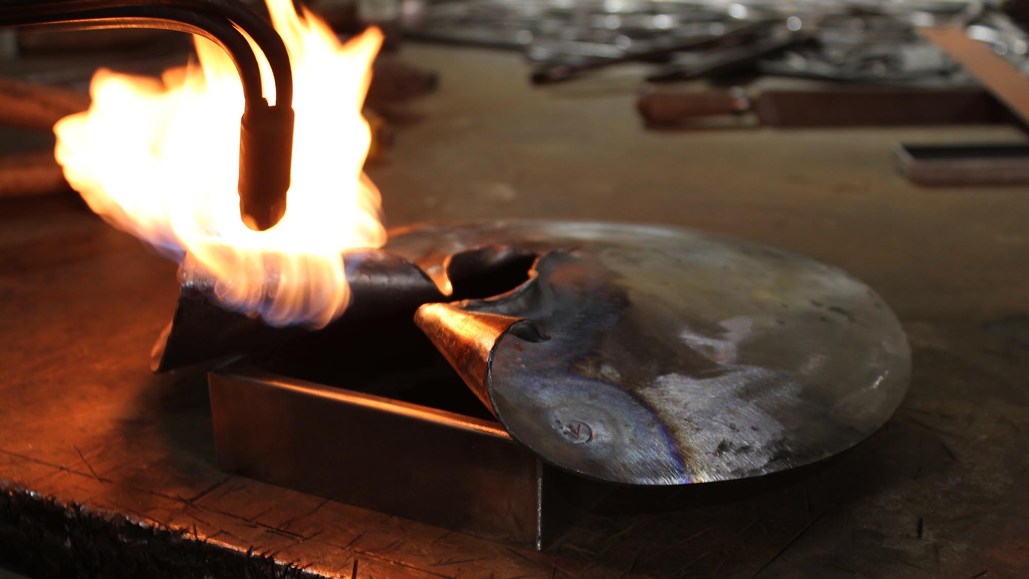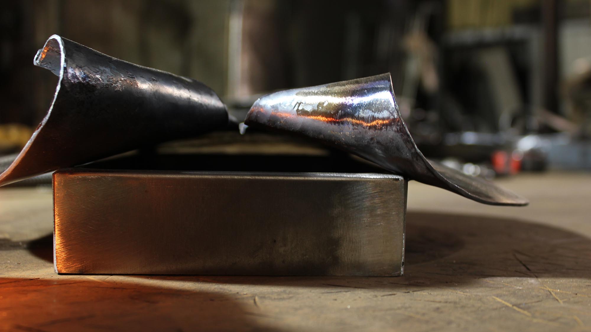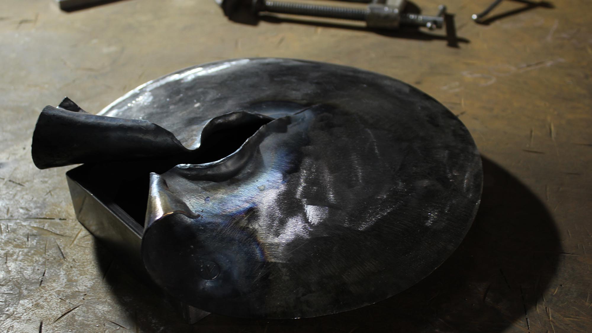 The split in the metal front panel is made by the hand of a blacksmith