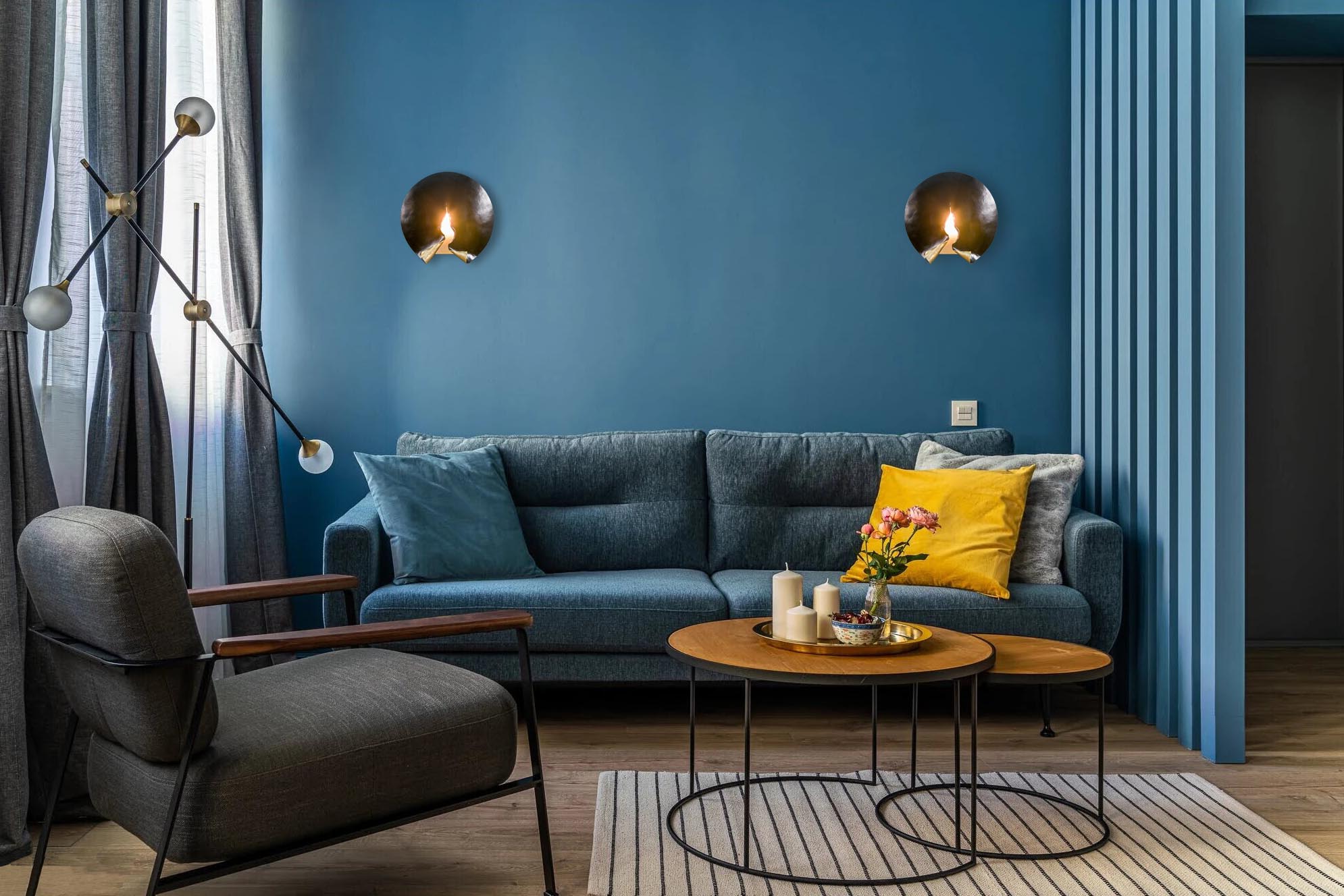 Lyton wall lamp consists of a hidden metal box with a lamp inside and 2 mm thick  metal front panel. It has a simple round shape that fits easily into most modern interiors. An LED lamp with a power of up to 10 W makes this sconce not only a wall decoration, but also a good source of light.