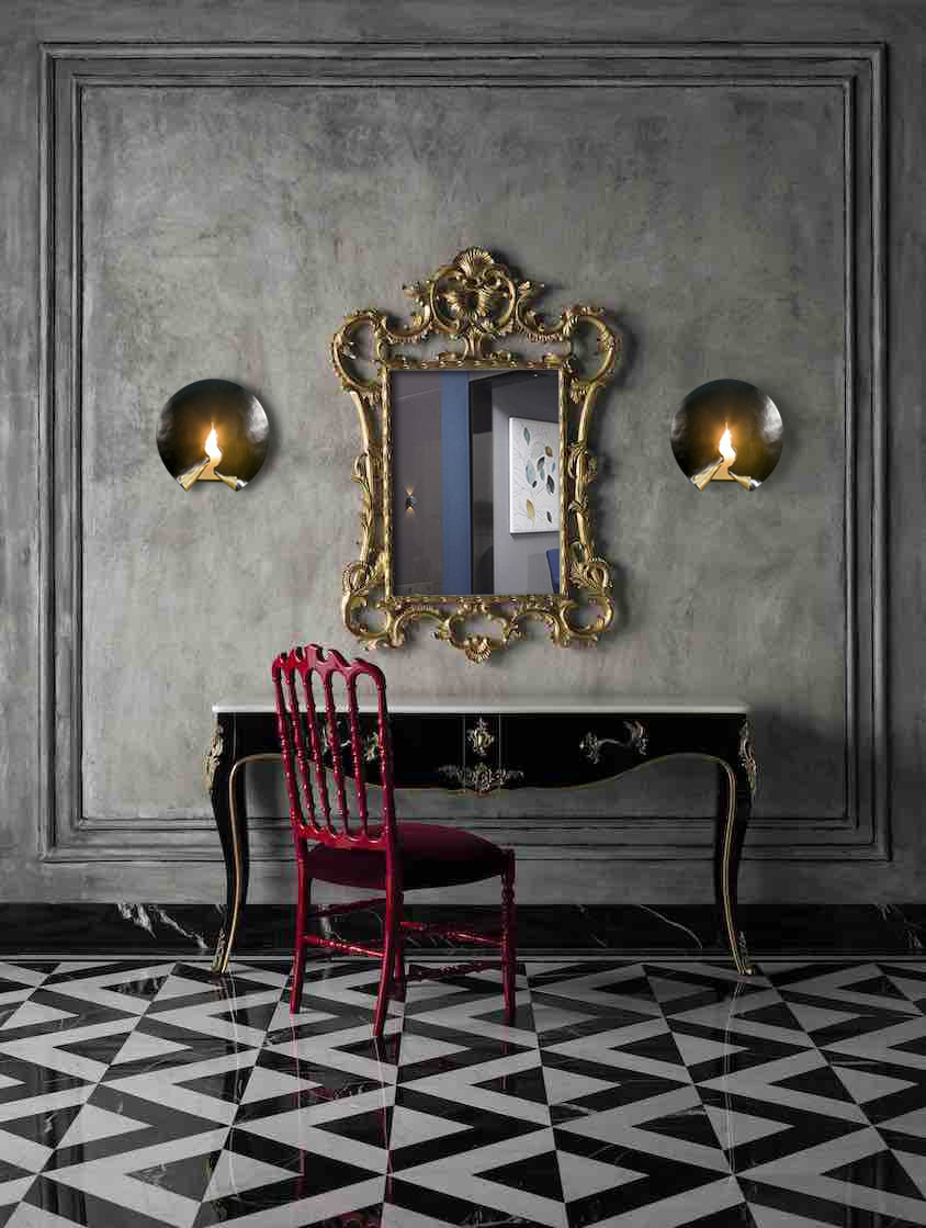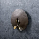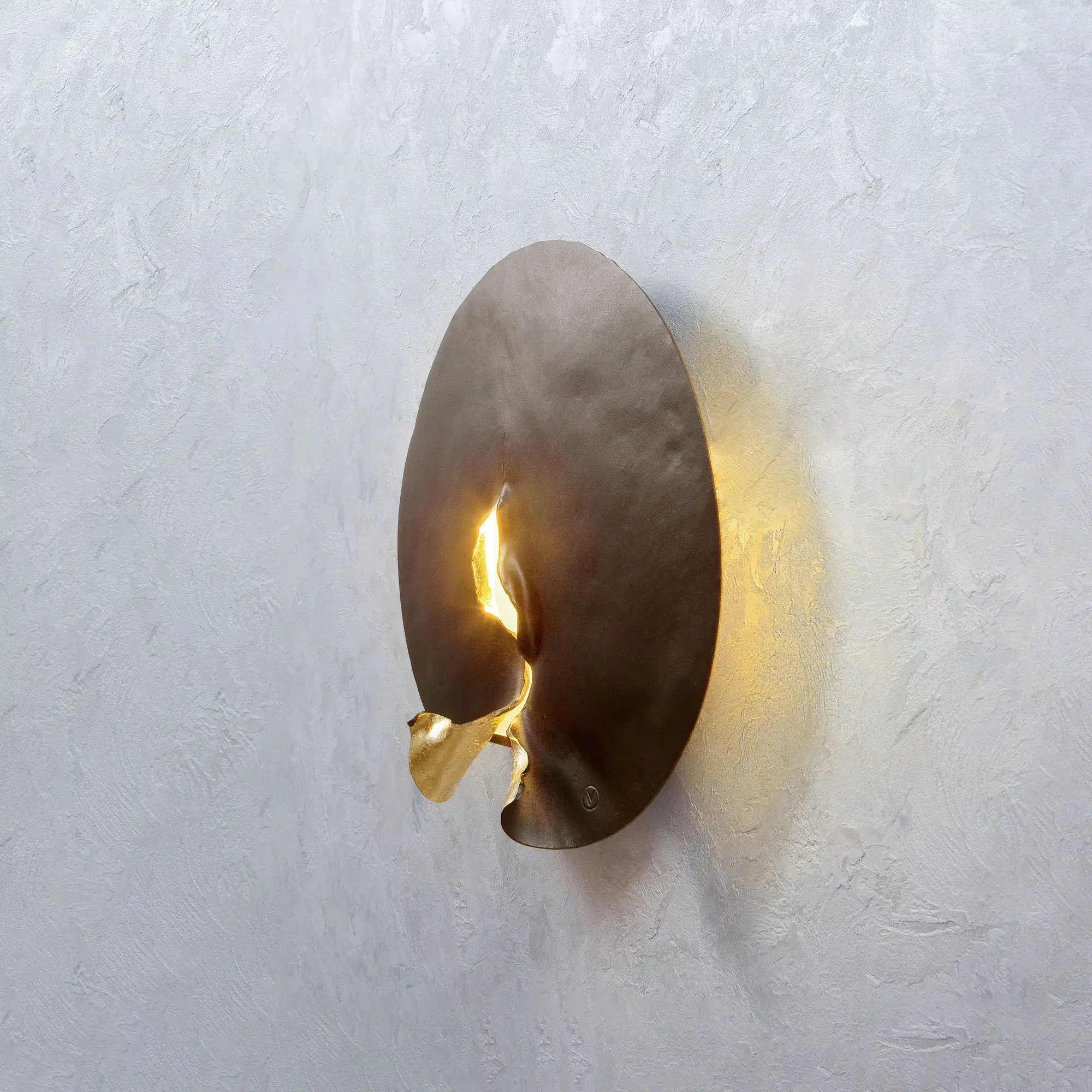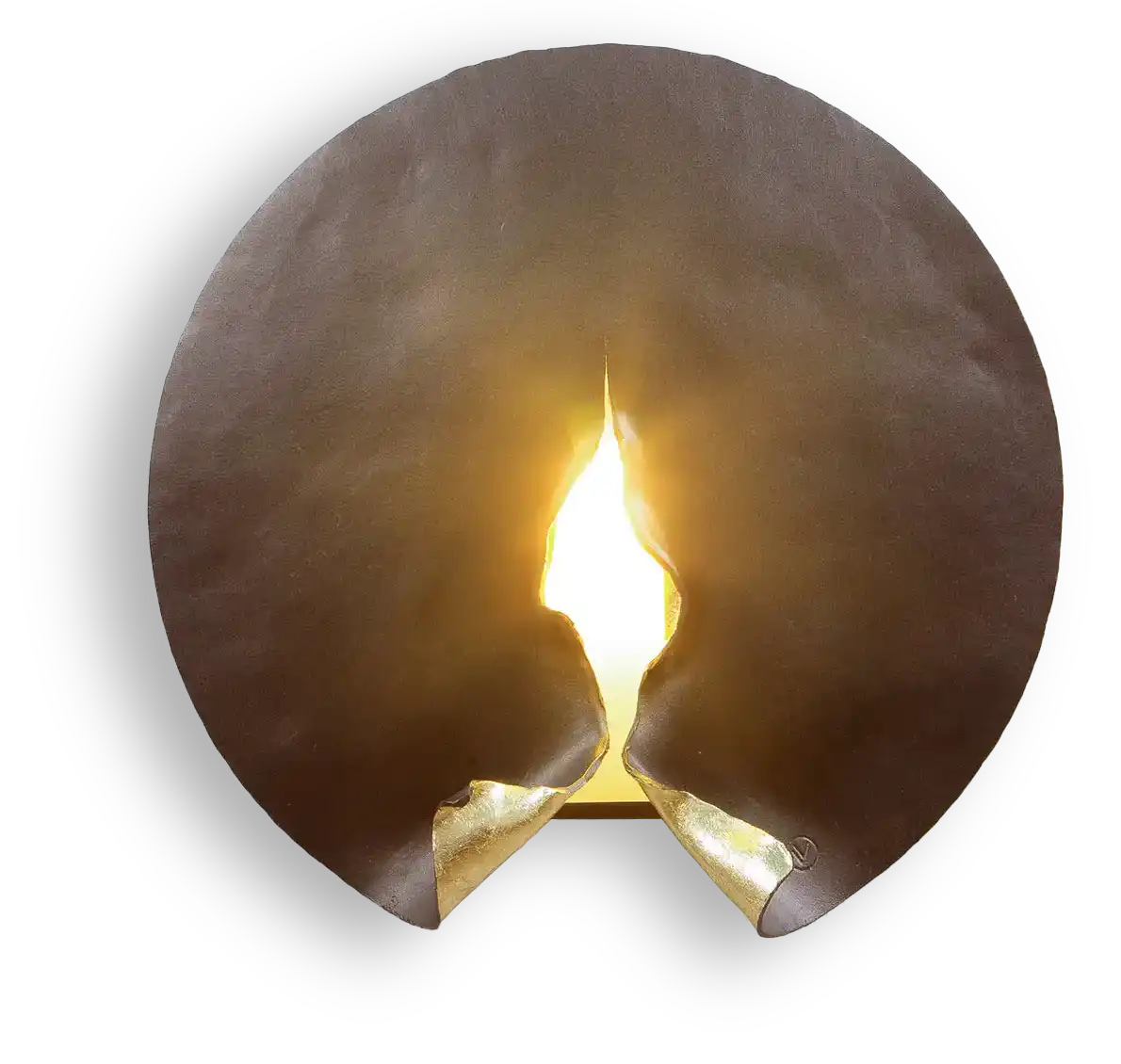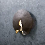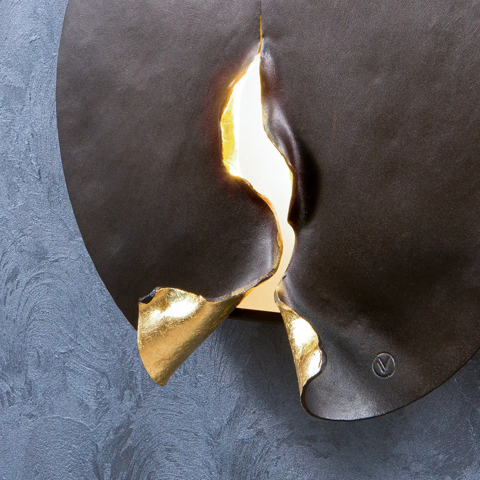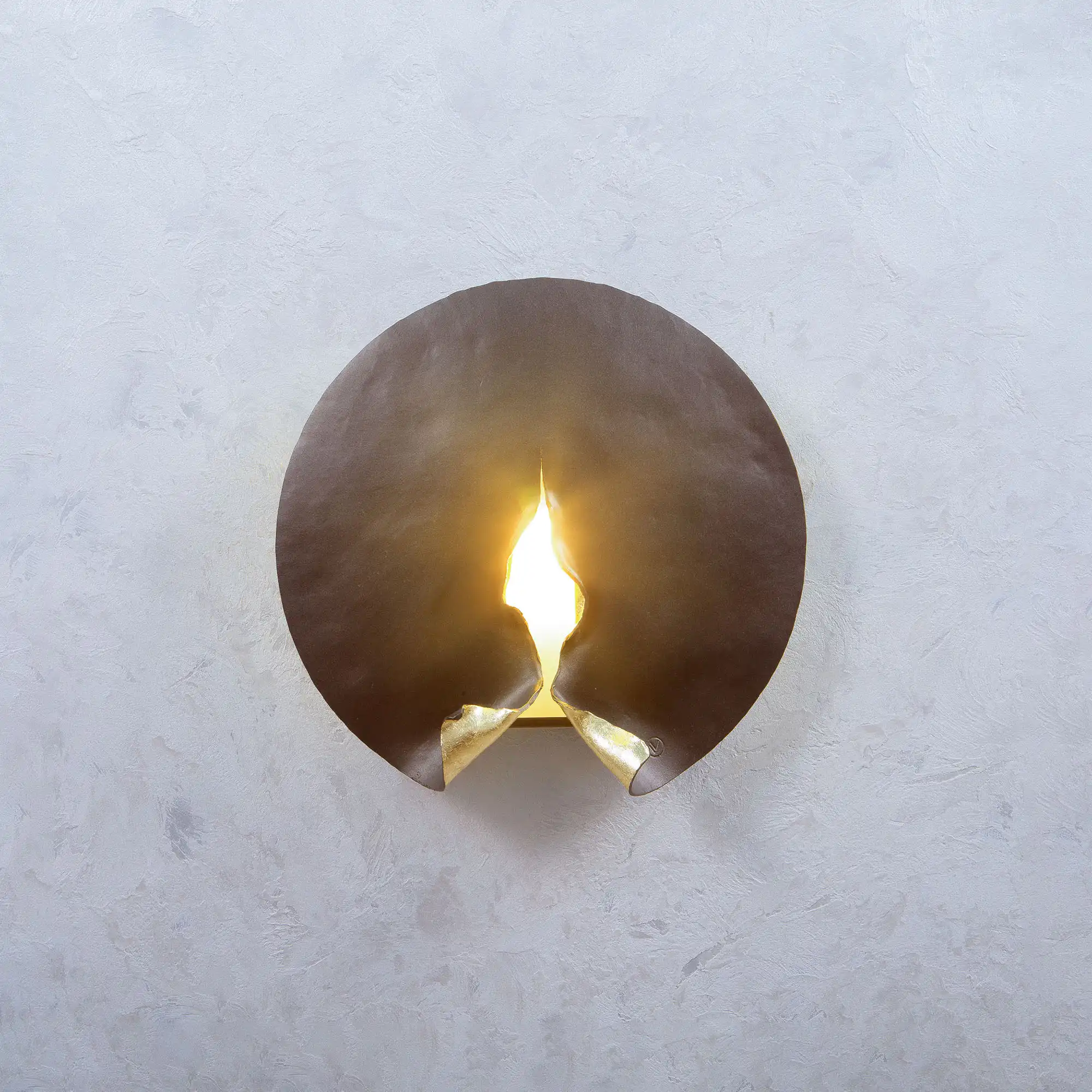 For maximum visual effect, the front side of the fixture has a bronze matte and velvet surface, while the folded parts of the back are plated with golden leaf and coated with a protective varnish.