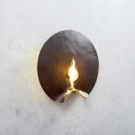 In this model, the metal seems light and malleable, unfolding like curtains and opening the way for soft, warm light. The overall convex shape of the front panel is handmade, so it shows numerous impact marks, giving the lamp an even more original look.