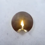 In the uneven tear of the metal decorative detail one can read the outline of a burning candle, the light of which glitters on the golden surfaces.