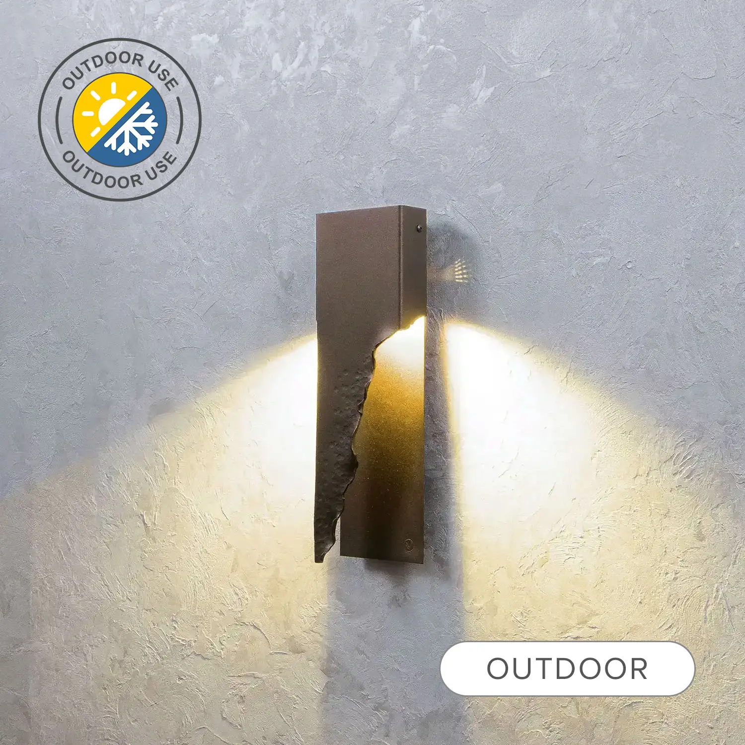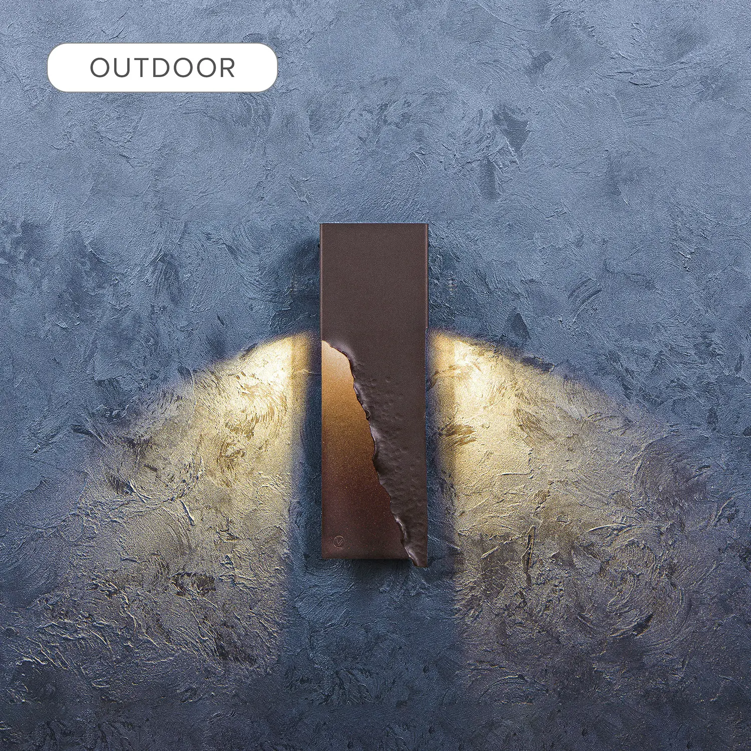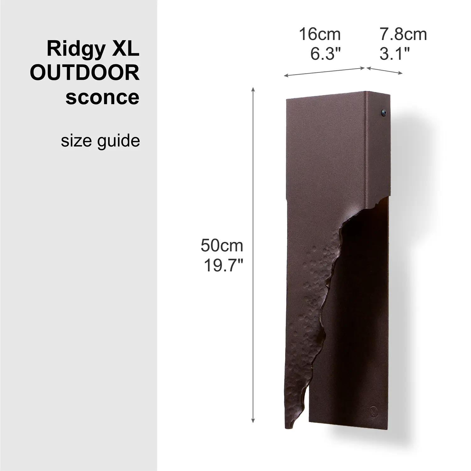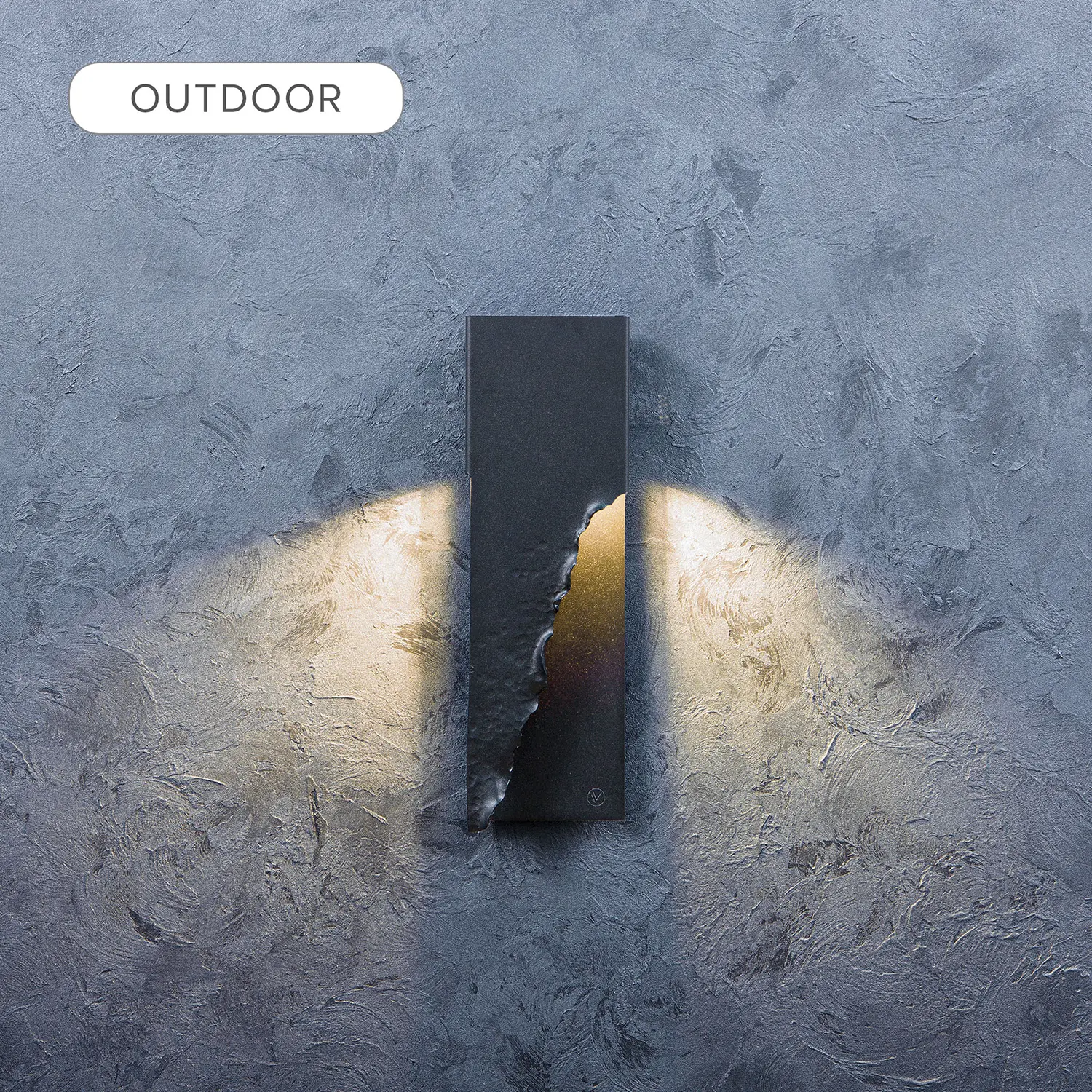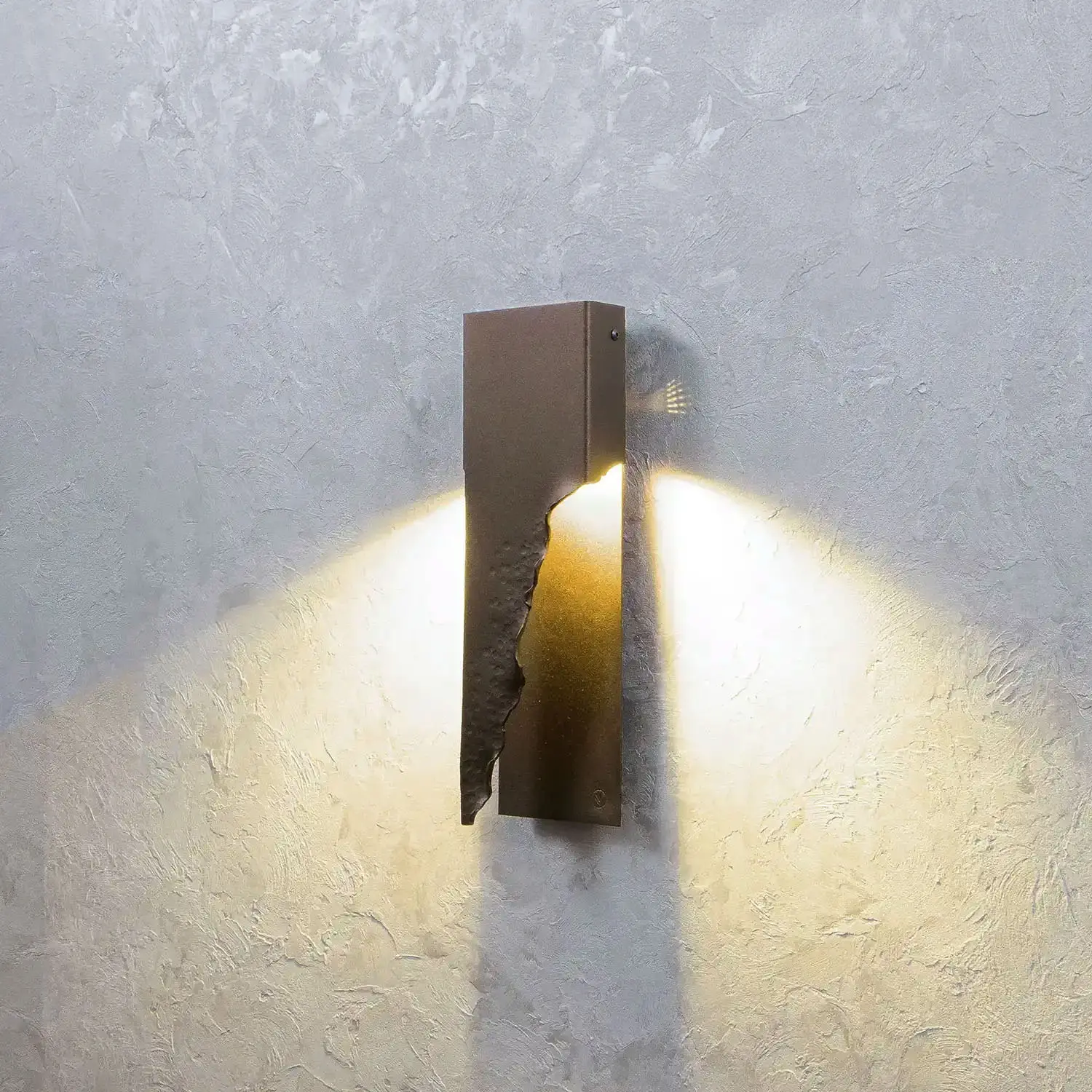 Contemporary outdoor metal wall lamp “Ridgy XL” combines hadcrafted textured elements with a simple minimalistic shape.