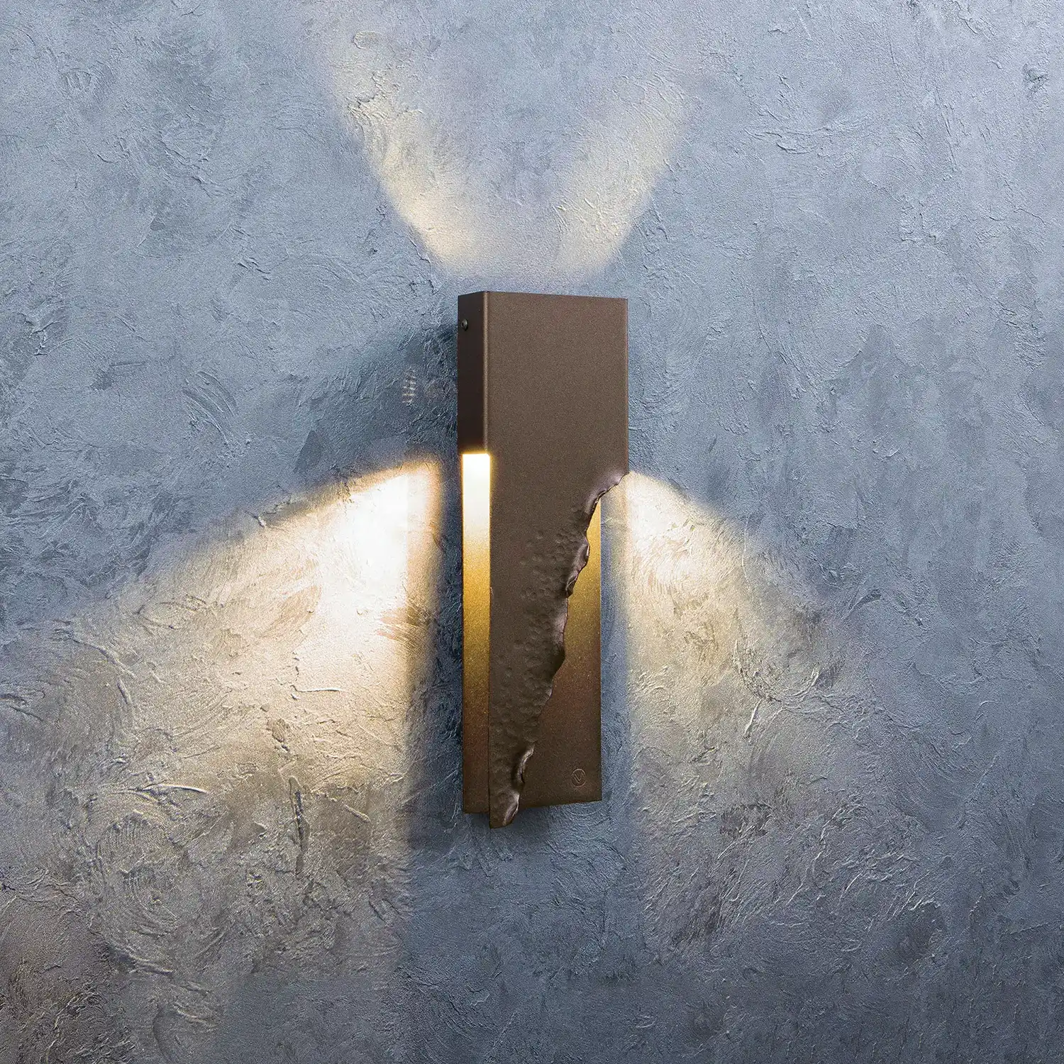 Contemporary metal wall lamp “Ridgy XL” combines hadcrafted textured elements with a simple minimalistic shape.