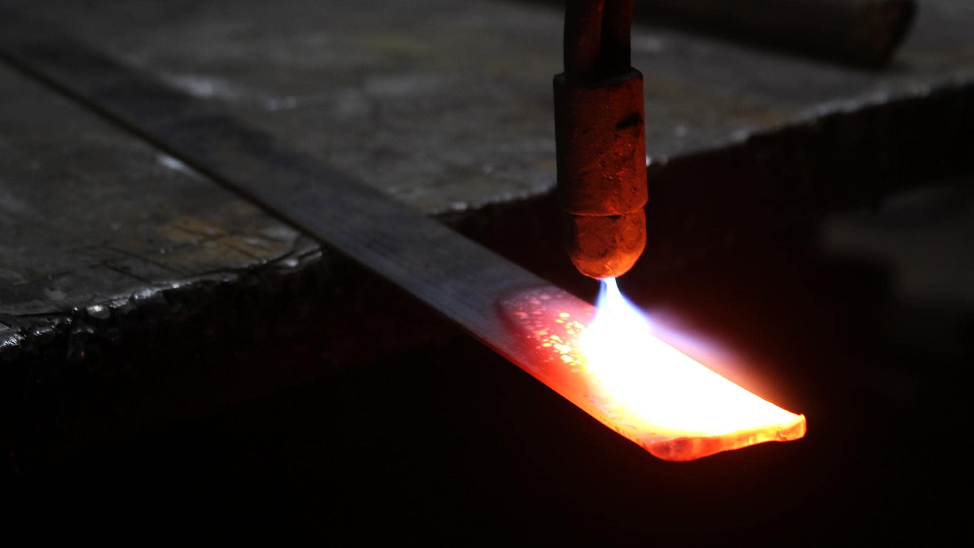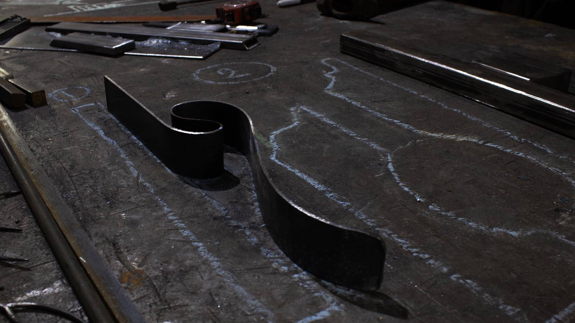 The central design stripe at the end is forged and coated with black paint with a velvet surface plus additional bronze patina