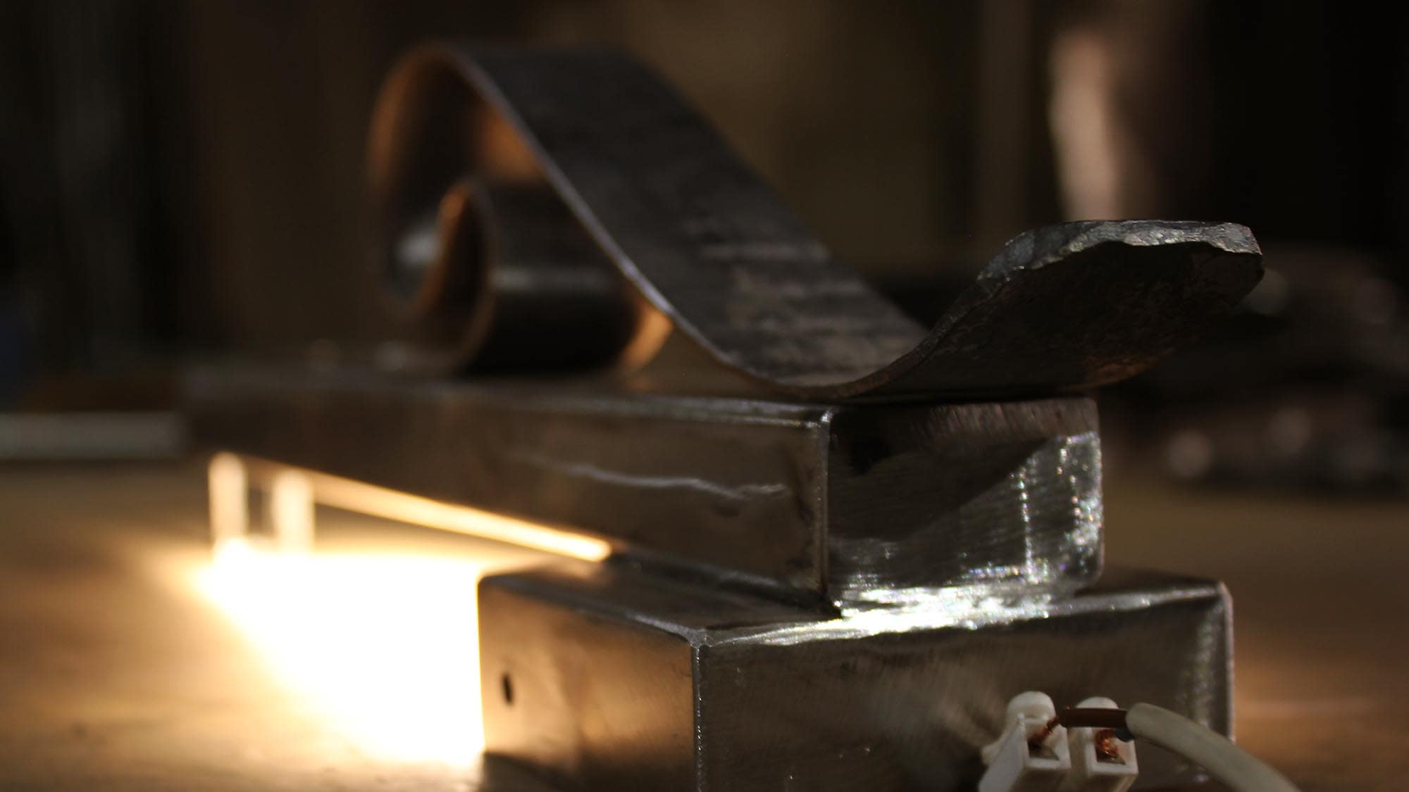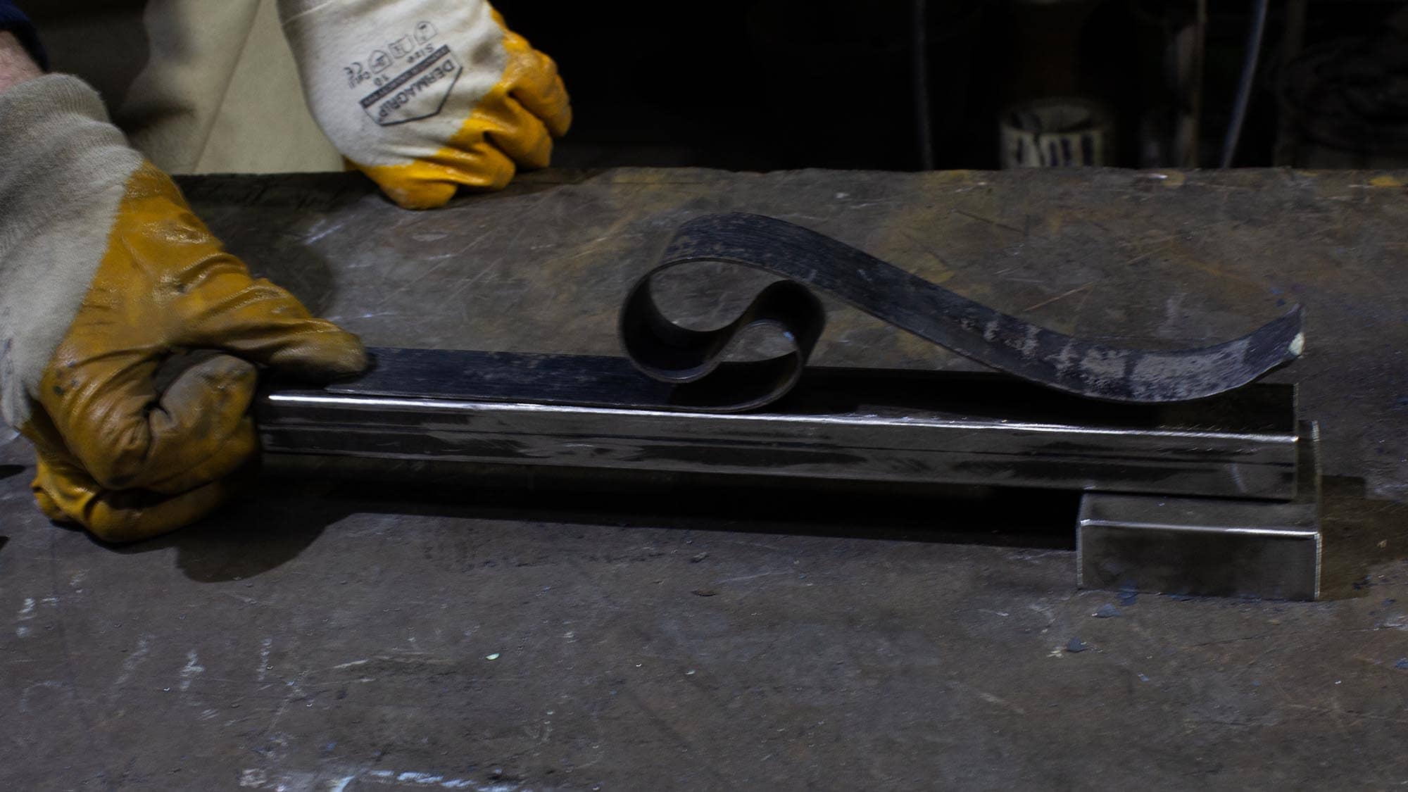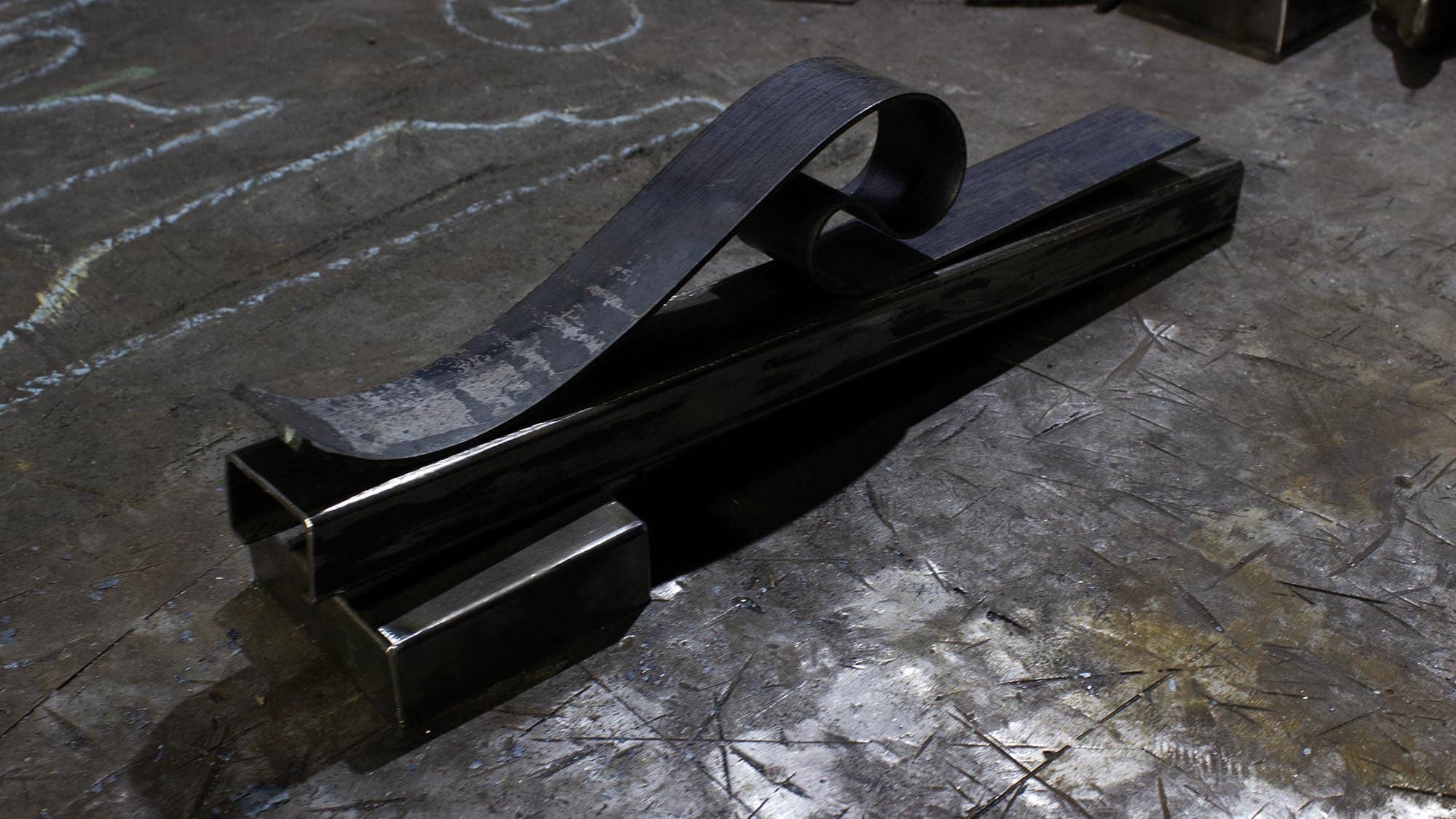 The elegant curve of the metal strip resembles a whip writhing in the air