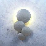 Behind the largest disk, an LED lamp is discreetly housed within a round box. This design allows the light to shine through precision-cut slots, casting rays in a 360-degree pattern, reminiscent of a glowing sun.